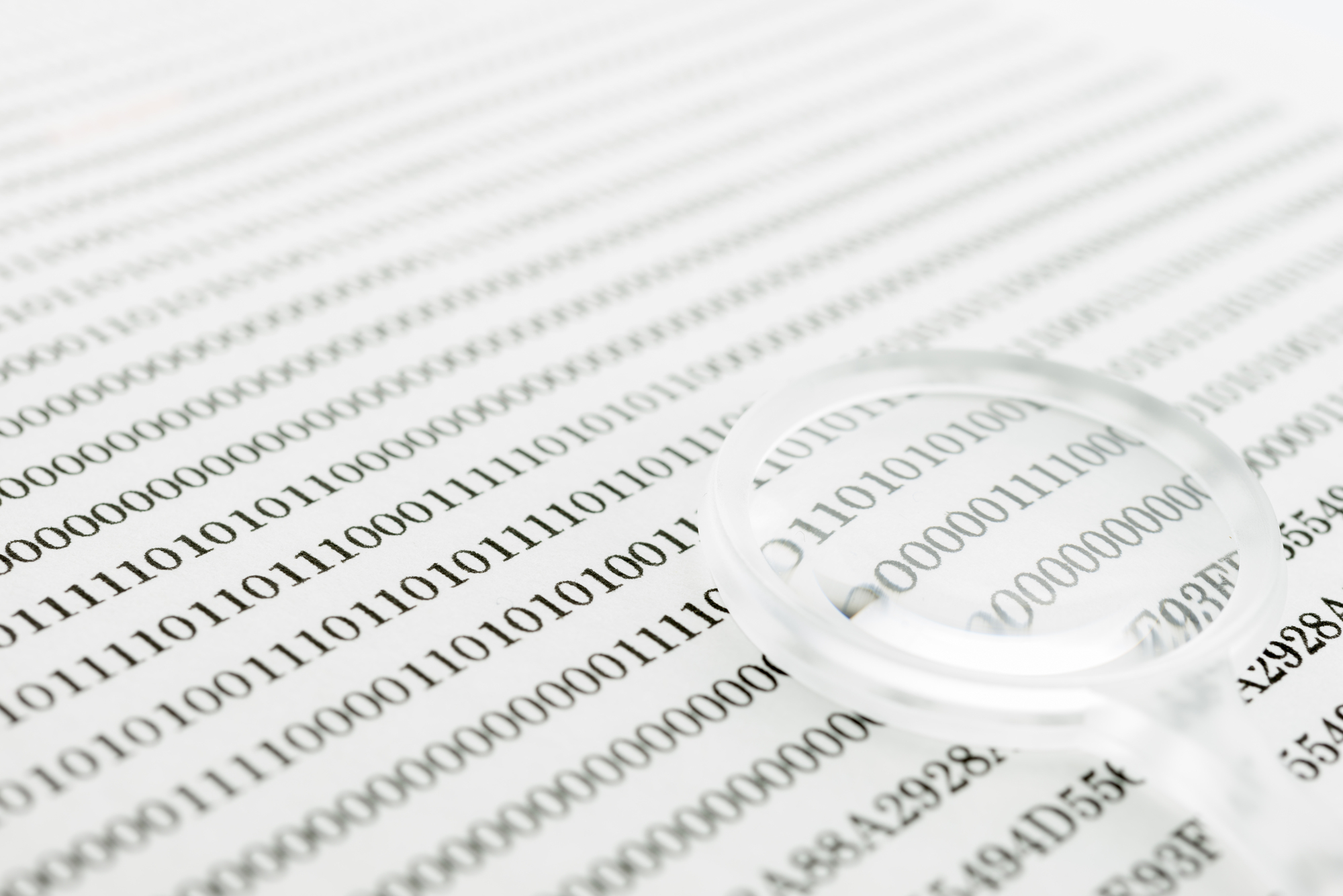 Binary code and magnifying glass